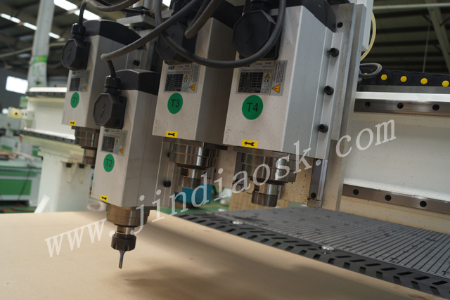 Panel furniture CNC cutting machines are used for making cabinet bodies (custom cabinet doors, whole-house custom furniture). They perform operations such as milling, edge trimming, drilling, and grooving on boards like particleboard and ecological board. Currently, manufacturers of CNC equipment across the market vary greatly in quality. Hefei Jindiao CNC, a producer of CNC machining centers and CNC cutting machines, welcomes you to take time for an on-site inspection regardless of which price range machine you are considering. This will allow you to clearly understand why there is such a significant price difference for the same type of machine and where the differences lie.