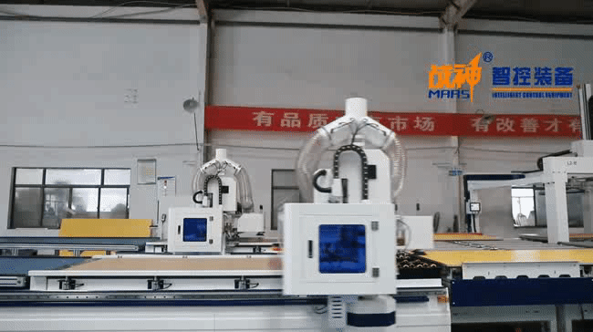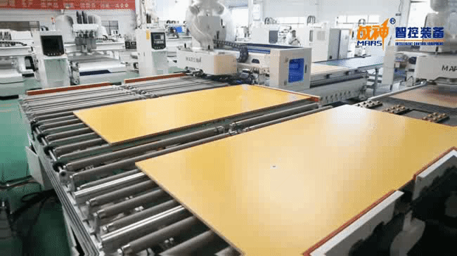 Nowadays, God of War Intelligent Control has launched the "1+2+2 panel furniture automation cutting line" and "one mechanical gripper+two automatic labeling machines+two cutting machines" to achieve intelligent production. It uses a large number of unmanned assembly lines for production, which can improve production efficiency and effectively avoid high labor costs, which can be said to be a win-win situation.
