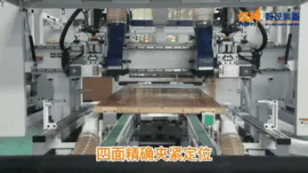 The automatic wooden door production line of the War God is a production process completed under the control of computer programs and machine equipment. —Double end rotation completes four-sided edge banding— Double end rotation