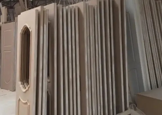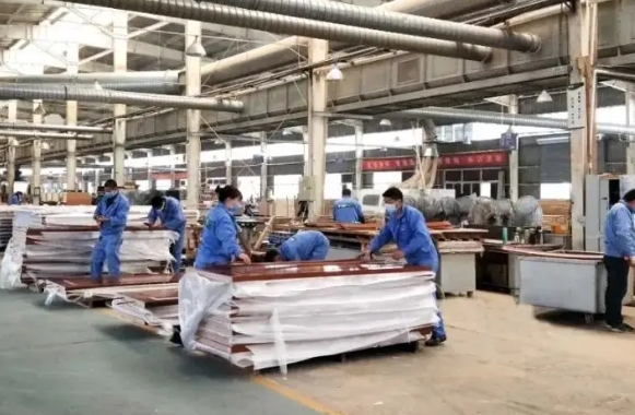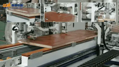 3) Door panel pressing and bonding, door panel sizing and squaring, edge banding, lock hole and hinge groove cutting, hardware hole and groove processing at door panel ends, and door panel surface profiling; 4) Door panel pressing and bonding, door panel sizing and squaring, edge banding, lock hole and hinge groove cutting, hardware hole and groove processing at door panel ends, door panel surface profiling, decorative strip installation, plastic sealing, and packaging, etc.