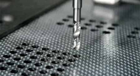 1. Carbon fiber composite materials have low interlaminar strength and are prone to delamination under cutting forces. Therefore, drilling or trimming should reduce axial force. Drilling requires high speed and small feed rate. Machining center speeds are generally 3000~6000 r/min, with a feed rate of 0.01~0.04 mm/r. Drill bits with three tips and two flutes or two tips and two flutes are preferable. Sharp cutting edges can first cut through the carbon fiber layers, and the two flutes repair the hole walls. Diamond-impregnated drill bits offer excellent sharpness and wear resistance. Drilling composite materials with titanium alloy laminates is challenging. Typically, solid carbide drill bits are used, with cutting parameters for titanium alloy drilling. Drilling starts from the titanium alloy side until穿透, and lubricant is added during drilling to prevent burning of the composite material.